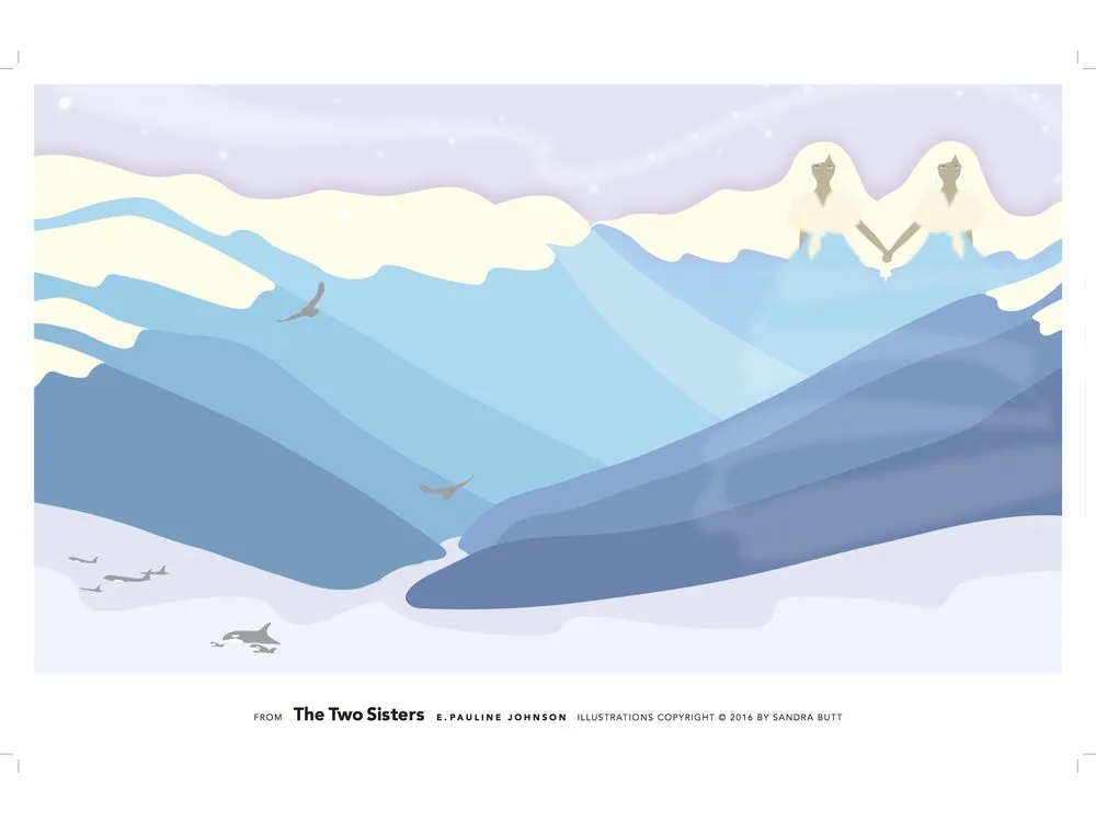 A First Nations legend, is accompanied by sumptuous illustrations that showcase the splendour of the Salish Sea. The universal themes of Creation, courage, and peace run through this legend of two little girls who grow up to be courageous young women who help to bring lasting peace to their world. The story is supplemented by a reference section that will enable a reader, parent, teacher, or visitor to the coast to immerse themselves in the rich history of Coast Salish cultures.